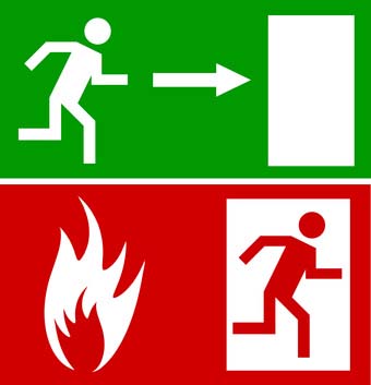 An exit sign is a device in a public facility (such as a building, aircraft or boat) denoting the location of the emergency exit , guiding people to the closest exit in case of fire or other emergency. Most relevant codes (fire, building, health or safety) require exit signs to be permanently lit. Exit signs are designed to be absolutely unmistakable and understandable to anyone. Most exit signs around the world are in pictogram form, with or without text supplement.