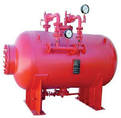 The assembly consisting bladder tank containing extinguishing agent Dry Chemical Powder or Foam with the facility to pressurize this agent through the means of Nitrogen gas filled in cylinder for Dry Chemical Powder and water pressure for Foam, which discharges into the pipe assembly or collapsible hose protecting the hazardous area.